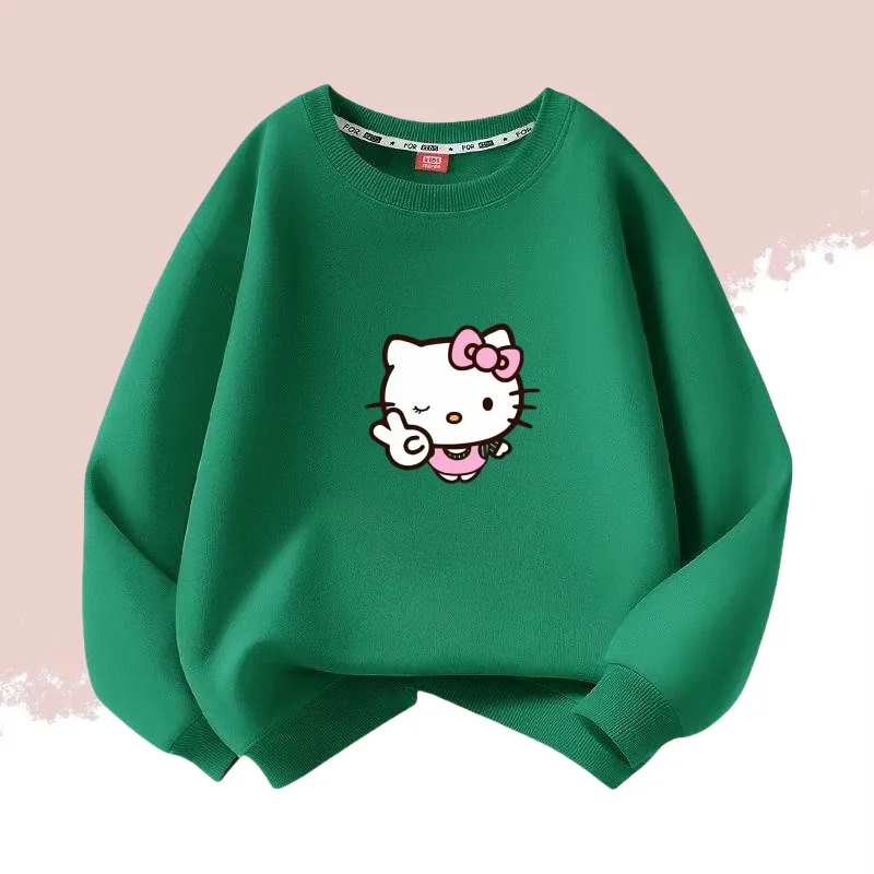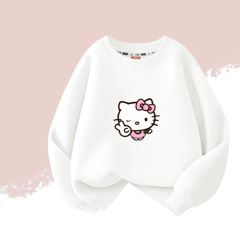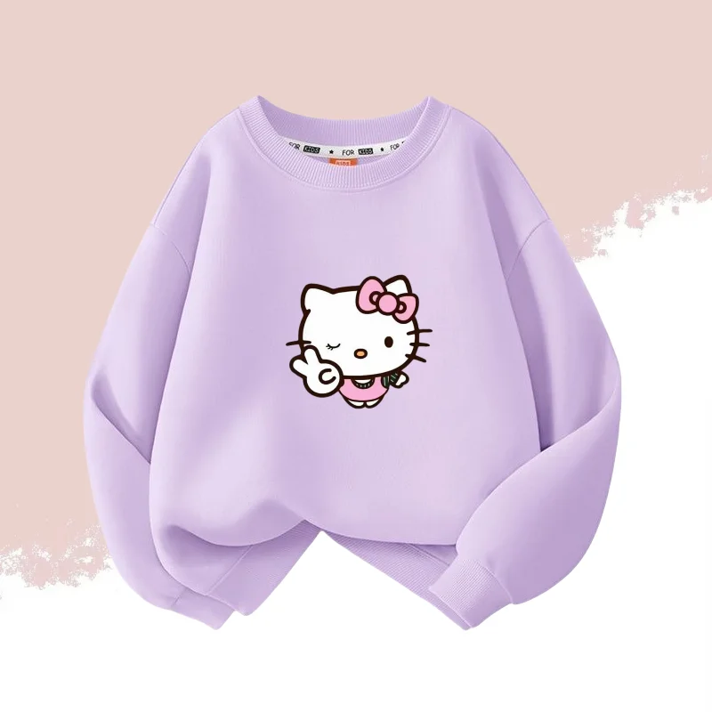 Autumn Baby Girls Clothes Kid Sanrio Hello Kitty Printed Long Sleeve Sweatshirt Children Cartoon O-Neck Soft Cotton Pullover Top