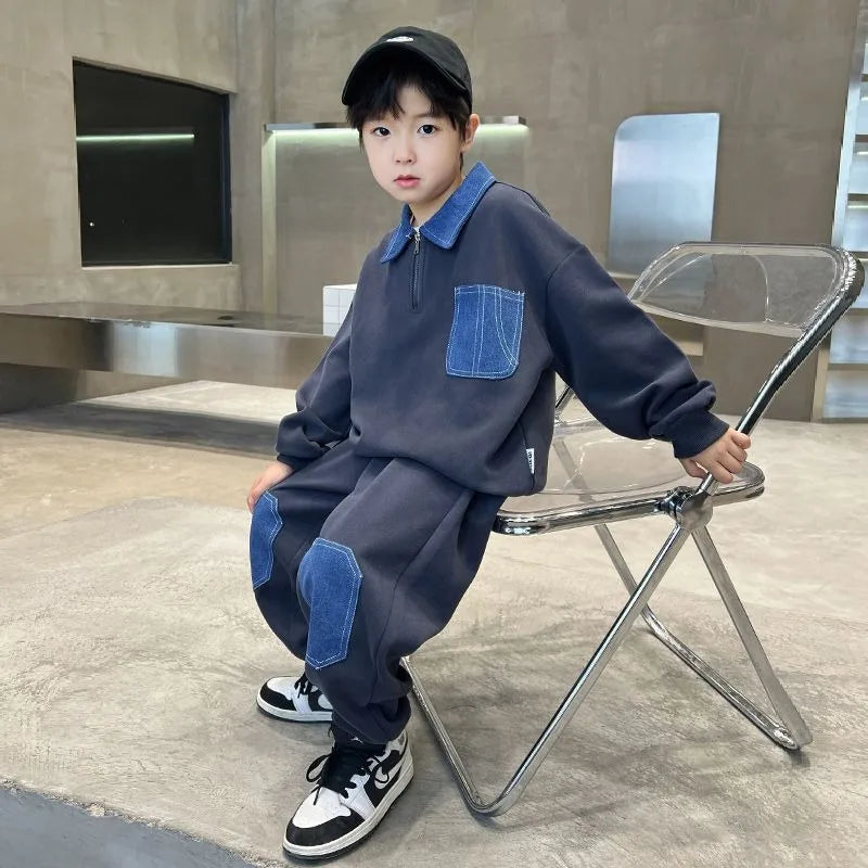 Colorblock Sweatshirt Set Children's Suit for Boy 2025 New Clothing Outdoor Clothes Winter Kids Men's Sets Boys Boy's Top Bottom