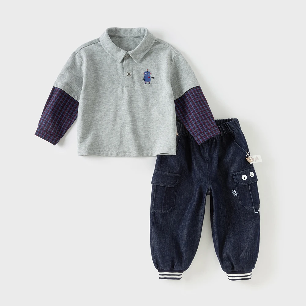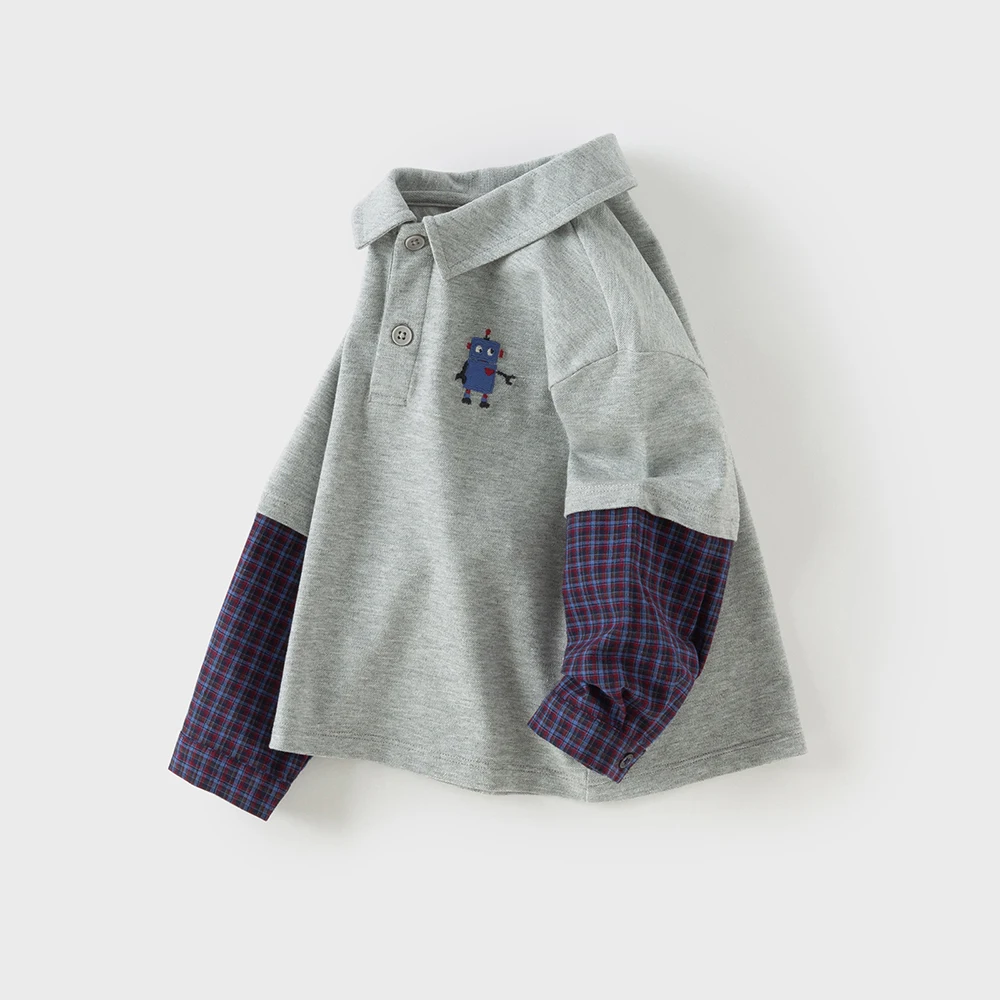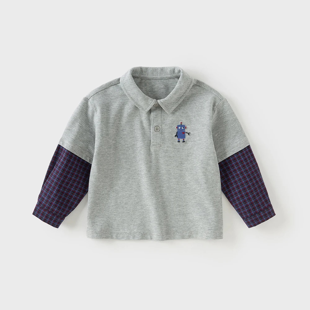 Dave Bella Boys Long Sleeve Polo T-Shirt Kids Printed Autumn Spring Plaid Tops Baby Cotton Casual Outdoor Clothes DB3253440