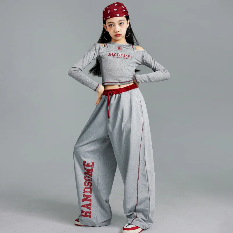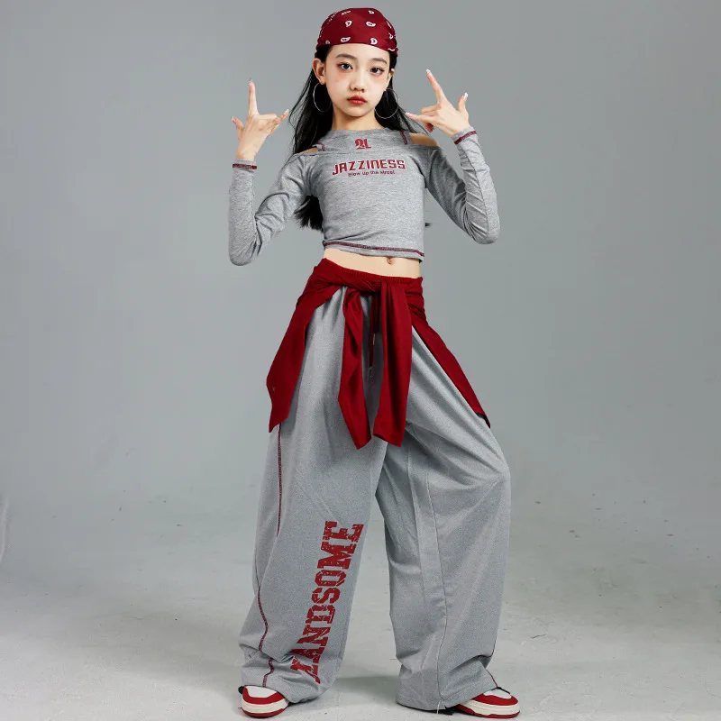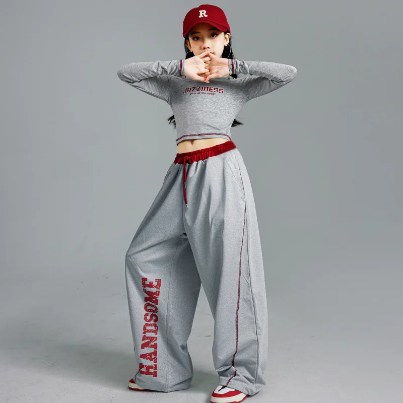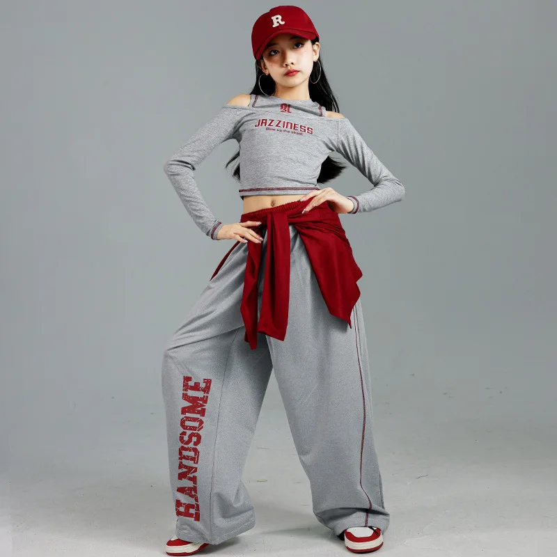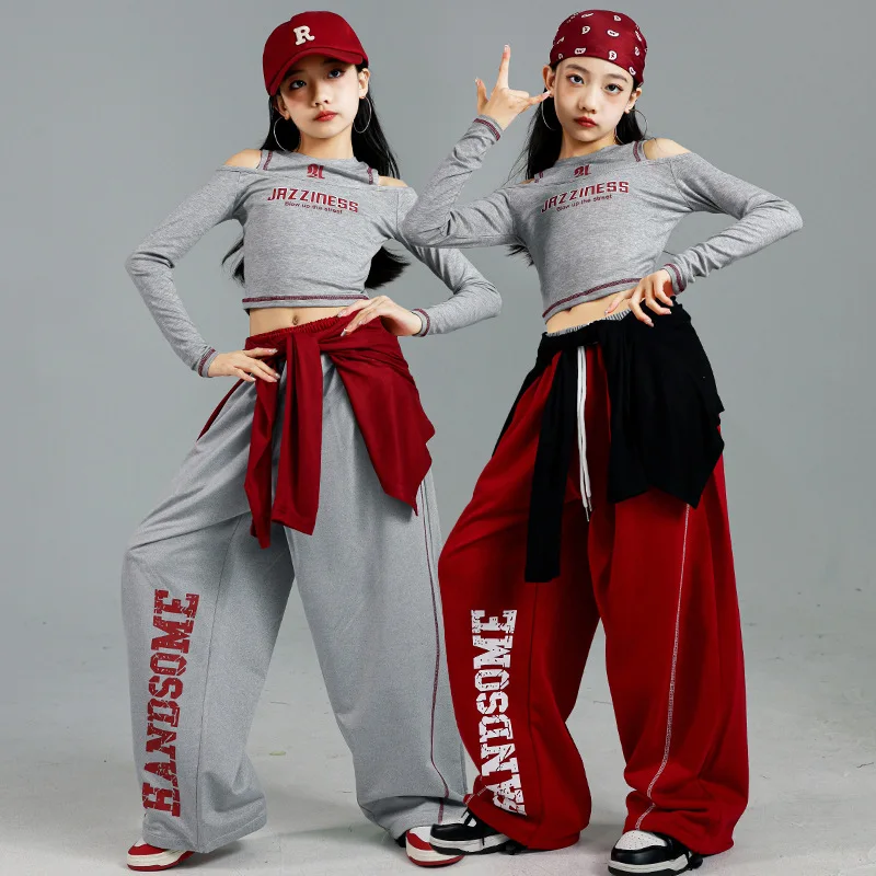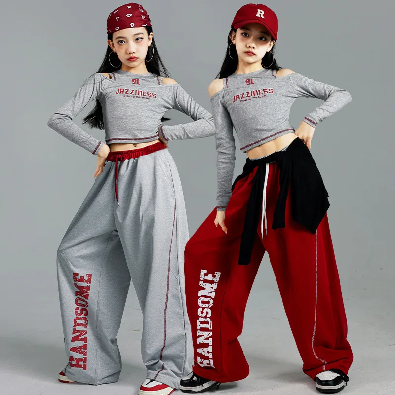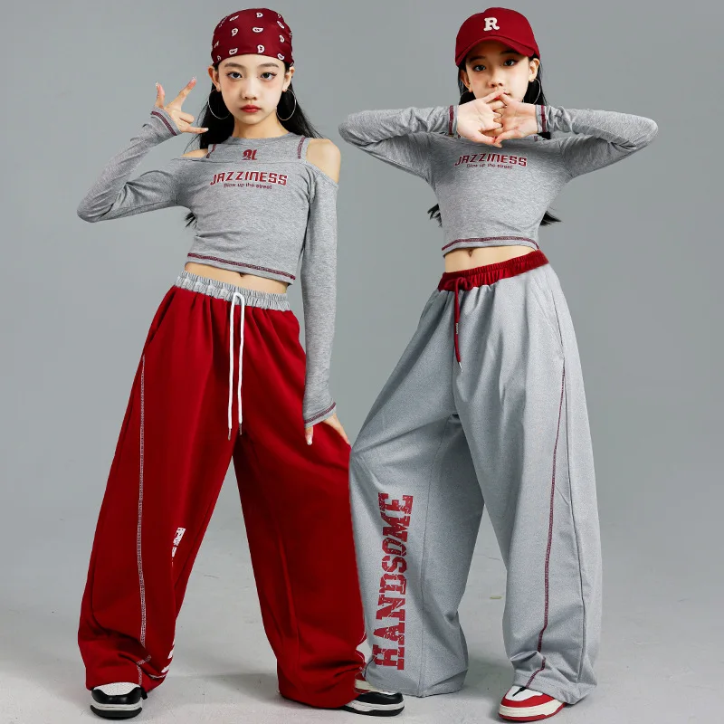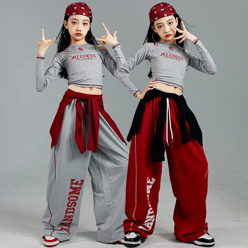 Red Jazz Dance Performance Outfit Long Sleeve Top Children's Streetwear Dance Clothes Trendy Kids' Pants for Girls